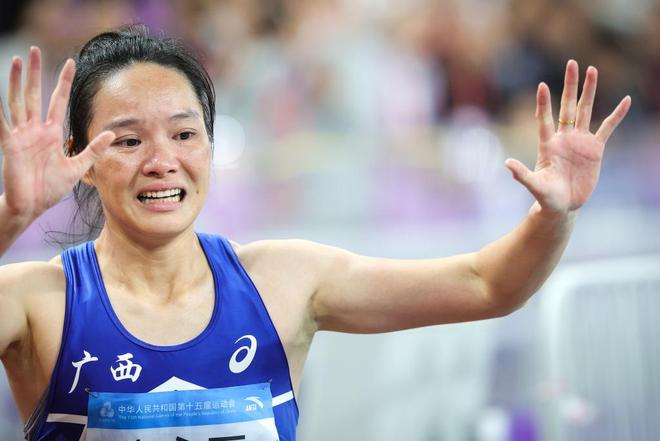 走下赛道,来到媒体记者面前,韦永丽哭了。