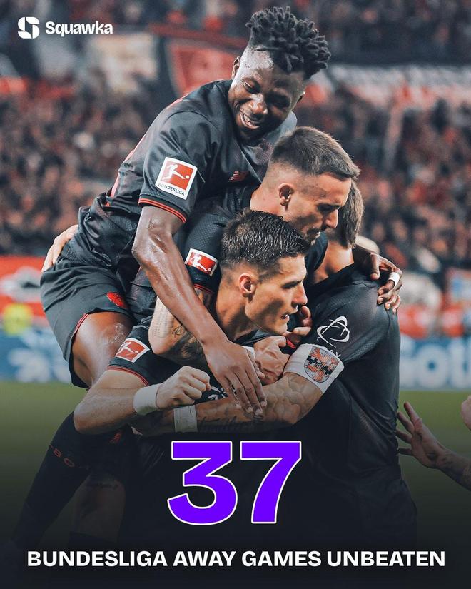 赛后根据Squawka的统计,此战过后勒沃库森已经在德甲联赛中保持了37场客场比赛不败,在欧洲五大联赛历史上,这一成绩能够排在历史第三位,仅次于1991年至1993年连续38场意甲客场不败的AC米兰,以及2023年至2025年连续39场法甲客场比赛不败的巴黎圣日耳曼。