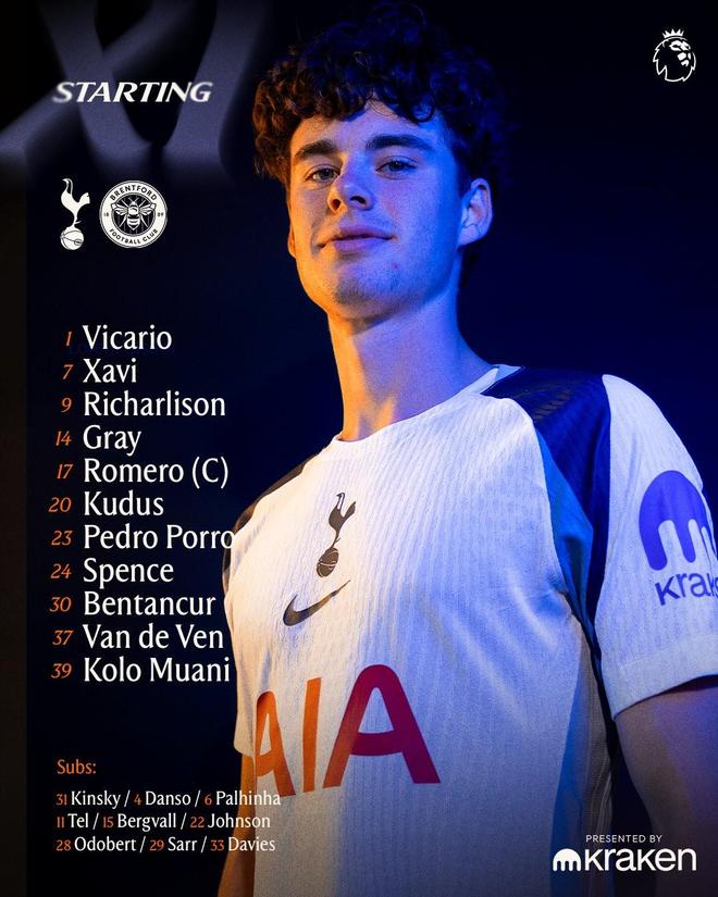 北京时间12月6日23:00,英超第15轮,热刺主场对阵布伦特福德。赛前首发公布。【上咪咕独家看英超】