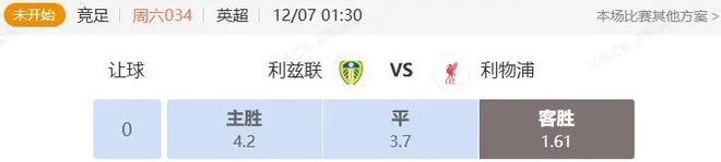 网易红彩今日挑选专家吴永亮和戴永强带来英超+西甲串关解析,更多精彩方案可下载“网易红彩”App进行查阅!1.专家:吴永亮竞足 周六034 英超 利兹联VS利物浦开赛时间:2025-12-07 0